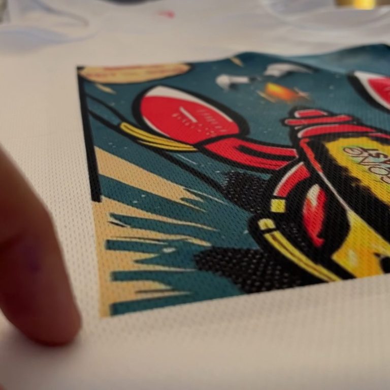 Beim Sublimationsdruck wird die Farbe nicht auf das Material gedruckt, sondern in das Gewebe eingedampft.